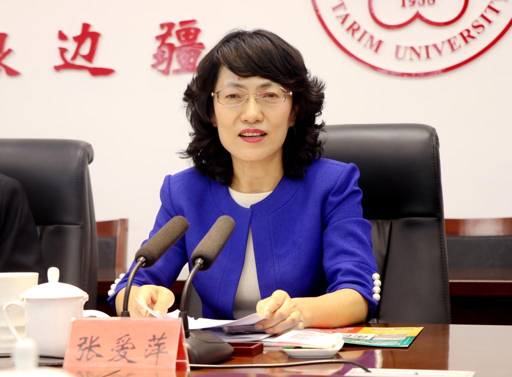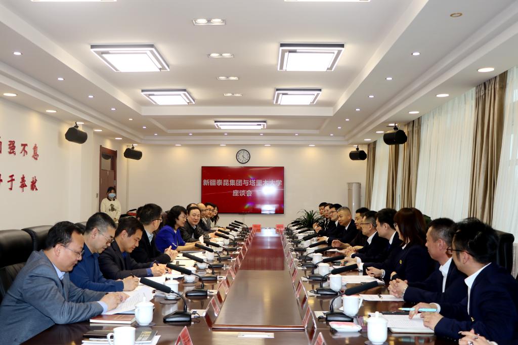 张爱萍欢迎梁建疆一行的到来,感谢新疆泰昆集团长期以来对学校事业发展的关心和支持,介绍了学校的光辉历程、辉煌成就、职责使命等情况。希望双方本着“校企合作,共赢未来”的原则,充分发挥各自优势特色,在人才培养、科学研究、成果转换等方面继续加强交流合作,深化产学研合作,形成使命共同体,携手履行好兵团维稳戍边职责使命,服务好南疆经济社会高质量发展。