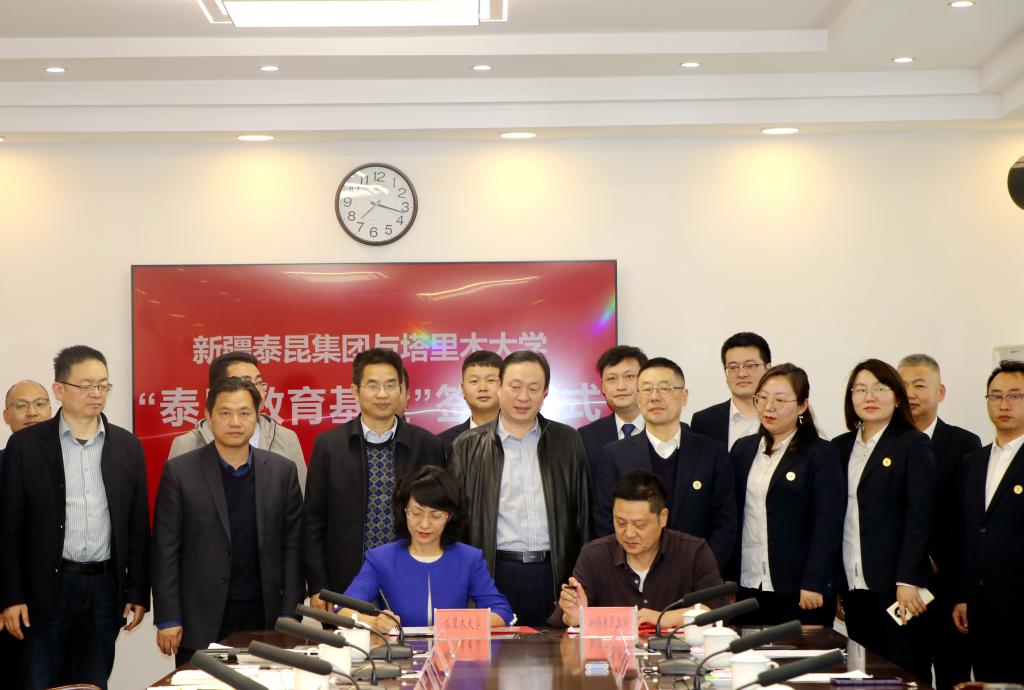 张爱萍、梁建疆代表校企双方签订了“泰昆教育基金”捐赠协议书。