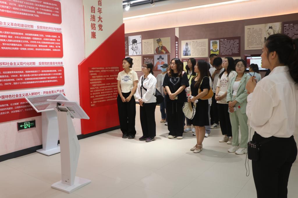在讲解员的带领下,同志们先后参观了河涟沧浪、清波镜鉴、风沐初心三个展厅,学习了习近平总书记关于全面从严治党的重要论述、全面从严治党的百年历程和取得的成绩,了解了近年来查处的有关党风廉政建设的典型案例,对师市反腐败历程和取得的成果有了全面的了解。
