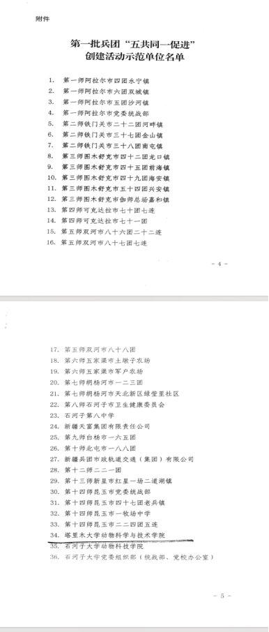 51大赛 获第一批兵团“五共同一促进”创建活动示范单位荣誉称号