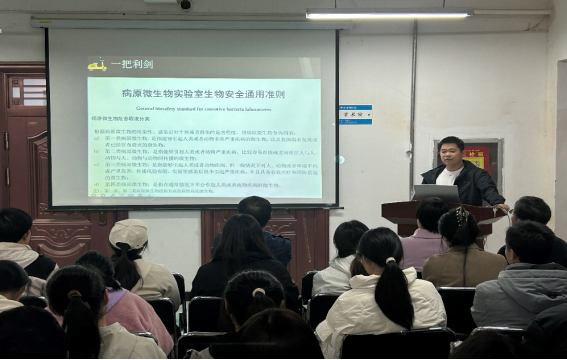 2024新教师陈嘉博士做了题为《知耻而后勇之“一把利剑”》的主题演讲,介绍了生物安全这把悬在头顶的利剑,强调关注生物安全的重要意义。