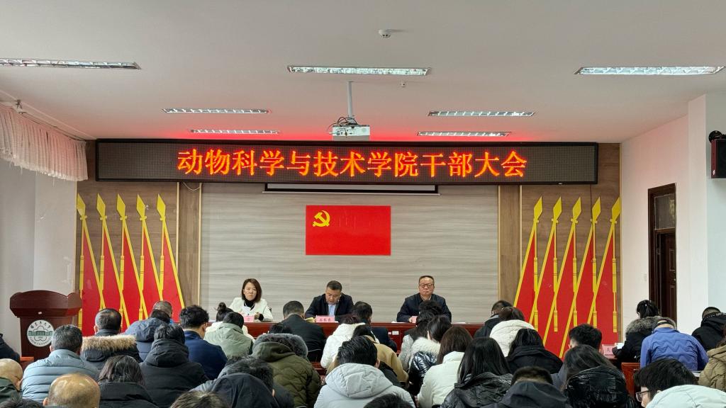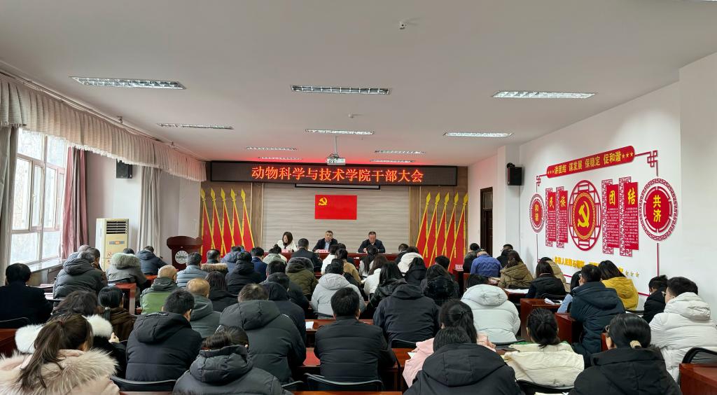 2024年度领导班子和领导干部考核大会在动科楼318会议室召开。学校党委副书记、副校长石长青,校党委常委、统战部部长、学院党委书记高庆华,党委办公室(校长办公室)主任陈蕾,考核组全体成员以及全体教职工参加。会议由高庆华主持。