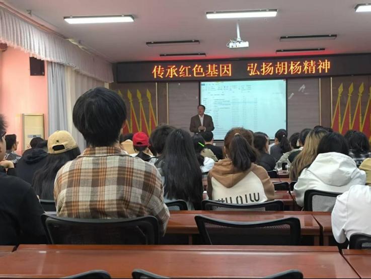校长、现任校关工委常务副主任王合理教授在动科楼318作“传承红色基因 弘扬胡杨精神”主题讲座。学院党委副书记魏晓柳主持讲座,学院青年教师及本科生代表共同聆听。