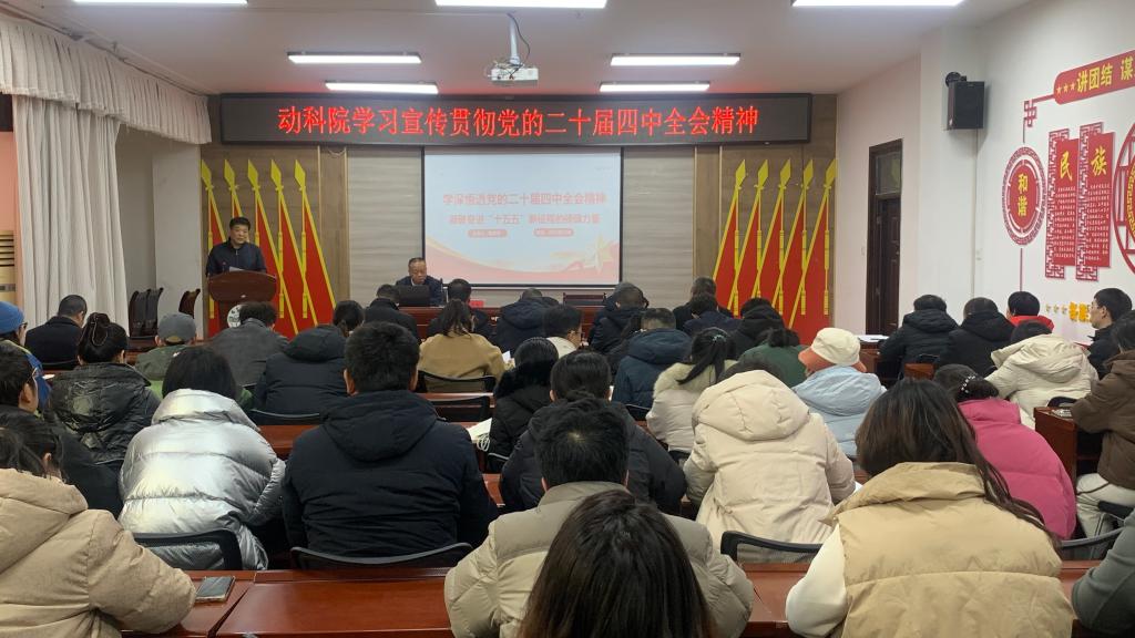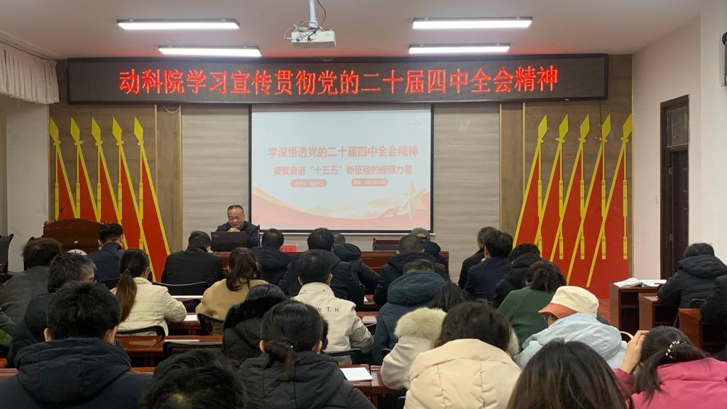 为师生宣讲党的二十届四中全会精神。学院领导、师生代表听取宣讲报告。宣讲会在动科楼318会议室举行,由学院党委书记梁国杰主持。