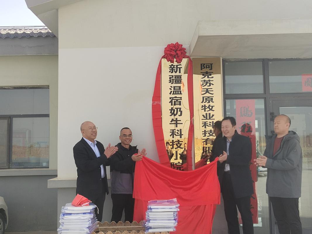 与阿克苏天原牧业有限公司(以下简称天原牧业)合作共建的“新疆温宿奶牛科技小院”揭牌仪式在企业所在地举行。