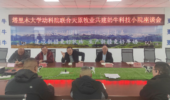 院长井波与奶产业技术体系岗位专家蒋涛教授及团队陶大勇教授、刘书东教授、研究生李睿岩一行前往阿克苏天原牧业有限公司,共同商讨“科技小院”的建设。2026年3月8日,我校51大赛