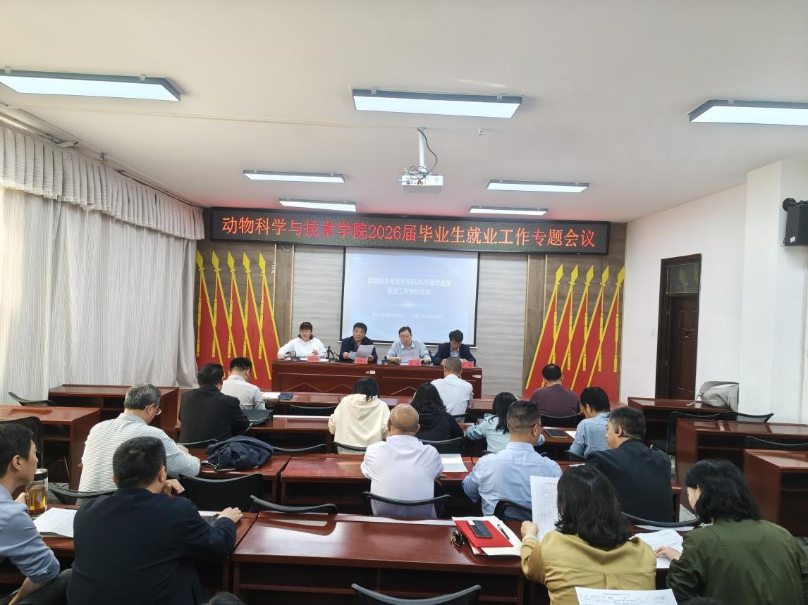 在动科楼329会议室召开2026届毕业生就业工作专题会议。学院党委书记梁国杰、院长井波、副院长齐萌出席会议,会议由党委副书记时学梅主持,各系室负责人、研究生导师及本科毕业班班主任参会。