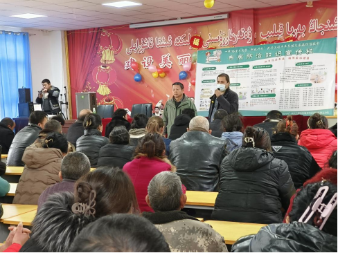 “乡村振兴”共兴工程科技特派员服务团队第五分队成员(胡建军、李静、阿力木·阿木提)、六团农业发展服务中心主任涂云锋、六团七连党委书记王道云等前往阿克苏市喀拉塔勒镇多斯库里村开展畜间牛羊布病、人间布病防治基础知识和牛羊疾病防治科技服务宣讲活动。