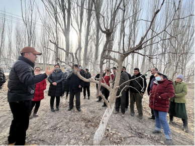 胡建军以展板的方式举用典例,为养殖户讲解布病传染方式和对人畜的危害,并对常见牛羊疾病提出相关预防措施和建议。阿力木·阿木提为果树种植户就果树修剪技术、病虫害防治技术等方面开展了现场实操培训及解惑。