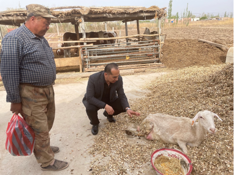 “科技兴村”共兴工程第二分队成员吐尔逊江·库尔班和武军元两位老师前往启浪乡博斯坦村示范点养殖户进行科技服务,就母畜在春季产羔过程中出现的生产性疾病进行了及时的对症处理。尤其针对母羊产后因缺钙而出现的瘫痪问题分别从药物治疗和饲料补充的角度进行了及时处理。服务期间,团队老师结合当前疆内外养殖业市场波动对散养户造成的冲击分别从饲养管理、疫病防控和饲养模式等方面提出了合理的建议。