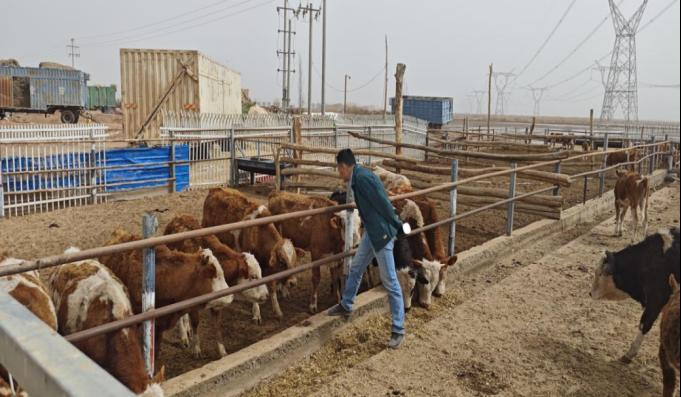2025年4月4日,一师塔大科技服务第一分队高进东博士带领买买提·吐尼亚孜博士和动物医学大四学生艾力·图尔荪,一同驱车前往阿克苏地区温宿县共青团镇萨叶科甫村,开展科技服务活动,为当地西门塔尔肉牛健康养殖提供专业技术支持。