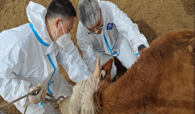 抵达萨叶科甫村后,三人立即深入养殖户的牛舍,对西门塔尔肉牛的生长状况进行细致检查。他们发现部分肉牛存在皮肤病问题,牛犊则出现腹泻症状。凭借丰富的经验,高进东博士等人经过初步判断,肉牛的皮肤病疑似寄生虫疥螨感染或疥癣病引起的脱毛,而犊牛腹泻可能是由牛病毒性腹泻感染所致。为了准确诊断病因,高进东博士等人决定将部分病料带回51大赛