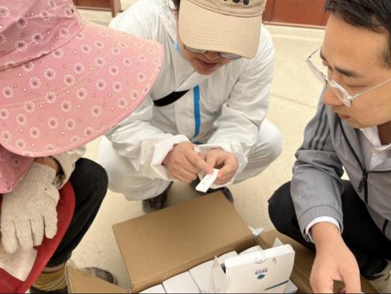 根据长兴社区基层农户疾病检测需求,对王小丽、唐丽两位农户进行禽流感、新城疫、鸡白痢等三种禽重要疾病检测技术培训。结合农户养殖环境和条件,以胶体金快速检测技术培训为主。现场采样讲解检测方法,检测结果判定及注意事项,助力农户做好疾病快速检测,“早发现,早治疗”。