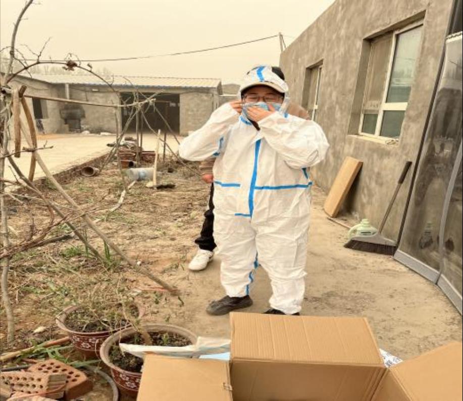 在前期培训过程中发现农户存在养殖基地防疫不规范现象,此次科技服务同时对农户进行防疫培训,讲解了“外防输入”的重要性。结合已有条件,为农户提供防护服,演示指导防护服穿戴等注意事项,为农户的基地防疫提供保障。(文/葛志毅 图/程思危)