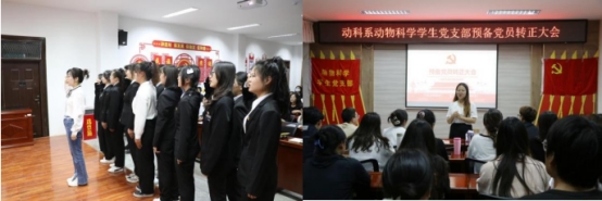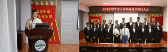 为积极响应党的号召,切实提高党员发展质量,为支部发展注入新鲜血液。5月13日晚,动科系动物科学学生党支部在动科楼318召开预备党员接收大会暨预备党员转正大会。本次会议由李祯同志主持,支部书记姚亚玲、副书记王式琴及全体党员、预备党员参加。