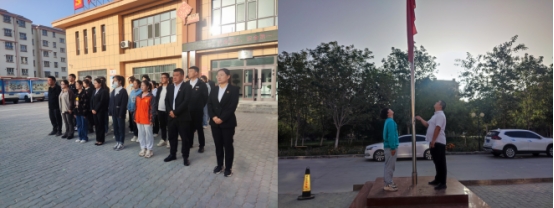 国歌声高亢激昂,五星红旗随风飘扬。上午10时许,动科系学生党支部与北苑社区党总支一同参加升旗仪式,在场党员肃然而立,行注目礼,齐声高唱中华人民共和国国歌。
