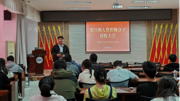研究生党支部在动科楼318开展第75期入党积极分子接收大会。党支部副书记胡延波、54名党员及14名入党积极分子参加会议,张博文同志主持会议。