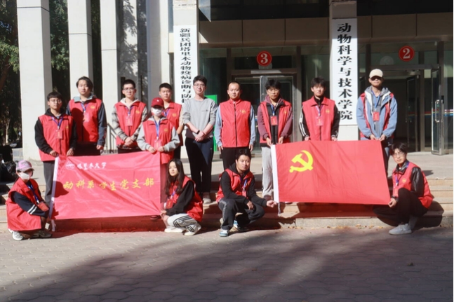 为充分发挥党员先锋模范作用,落实“全心全意为人民服务”的宗旨,10月18日,动科系学生党支部组织开展“党旗映天山”清扫实验室志愿服务活动。
