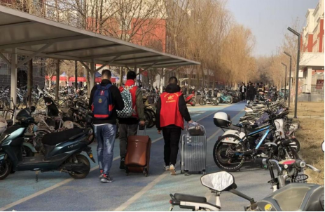 不管多苦多累,志愿者们都始终站在第一线迎接新生,让新生们一到学校就喊收到来自学长学姐的热情。在迎新期间,校园内随处可见身着红马甲的志愿者。有的骑车搬运行李,有的跟车帮助新生搬运行李,有的步行带领新生领略校园风光。