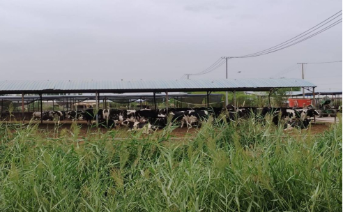 清风阵阵,望眼过去一片绿色。在参观了解饲料制作机器及其制作流程后,团队成员继续参观了苜蓿种植基地和奶牛养殖基地,苜蓿草长势喜人,已经收获了一茬。通过介绍,团队得知该公司牧场占地面积240亩,现存栏荷斯坦奶牛2300头,奶牛产奶量可观。一个个的现代化圈舍,其中“奶牛们”悠然自得,享受着食物带来的满足与充实。团队了解到苜蓿草中含有丰富的蛋白质、维生素和矿物质等,可以有效补充牛的营养。其中含有的未知生长因子,可以帮助促进牛的生长发育,使其更快更健康地生长。苜蓿草口感较好,含有多种微量元素和氨基酸,在可以提高奶牛食欲、使其更容易消化吸收其他饲料的同时,还可以提高奶牛的自身免疫力,预防疾病。此外,苜蓿草可以调节牛的体温,使其体温保持在正常的范围内。