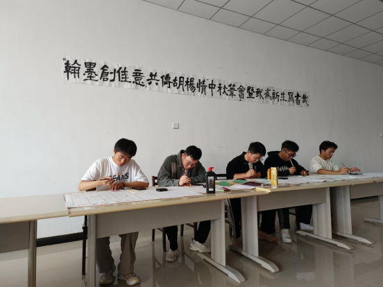 齐萌老师主持的兵团“庖丁解牛”名班主任工作室在图书馆三全育人基地书画社开展“翰墨创佳意,共传胡杨情——中秋笔会暨我为新生写书签”活动。