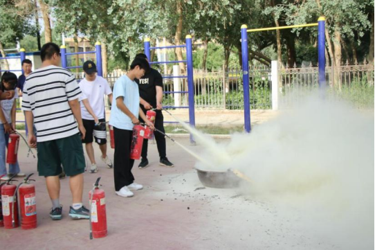 警报响起后,各宿舍楼的同学们有序安全地撤离到东10宿舍旁边的安全地带,集中学习由党委保卫部安全生产科邀请消防专业技术人员做消防培训,主要从火灾种类介绍、常见灭火器的使用范围、灭火器的检查方法、灭火器的使用方法及演示。