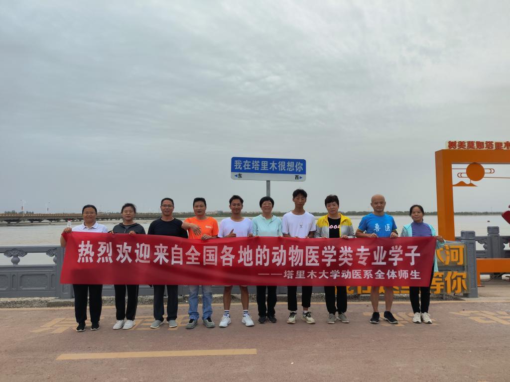 早上8点,天蒙蒙亮,动医系师生先在教学动物医院门口集合,随后慢跑至塔里木河,展开欢迎横幅进行了合影留念。合影后,集体慢跑3公里。给别师生一口气跑了十几公里,以示欢迎的诚意。