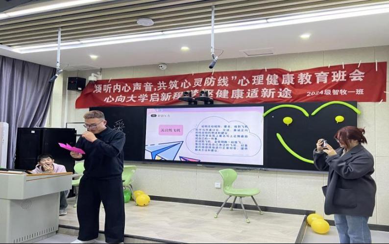 智慧牧业科学与工程专业2024级1班在综合楼106教室成功举办了一场以“心向大学启新程,梦逐健康适新途”为主题的心理健康主题班会。邀请专业负责人郭雪峰教授和班主任宋鹏琰老师参加,班会由班长安晓虎和团支书马晶同学主持。